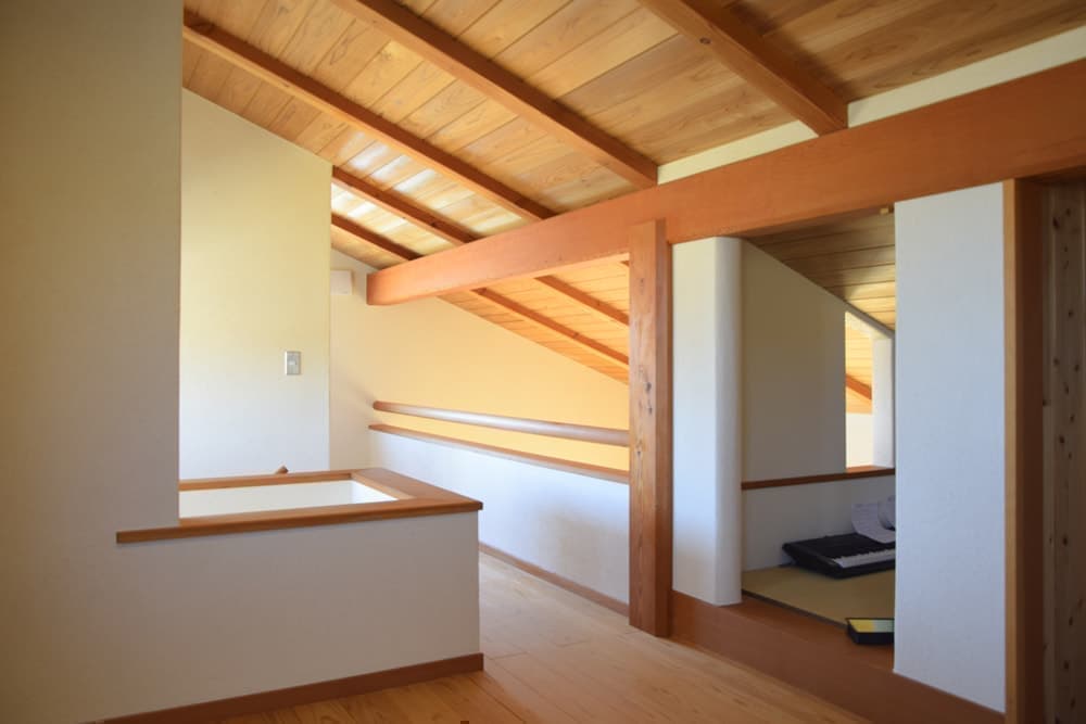 ご夫婦が家づくりを考え始めた頃は高気密・高断熱など性能最重視の本を読んだそうだが、実際にいろいろな家を見学するにつれ、自然素材を使った伝統工法による家、長く居て気持ちのいい家がいいという結論に。工業製品とは違い、壁や柱の木目は見ていて飽きることがないというご主人。木部のオイルを自分たちで塗ったこともあり、愛着はひとしお。居間から眺める開けた大地と富士山の景色も最高だ。