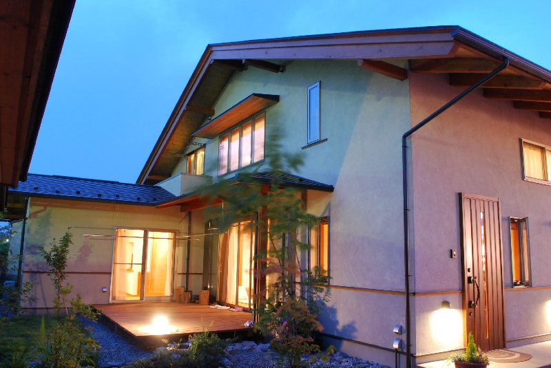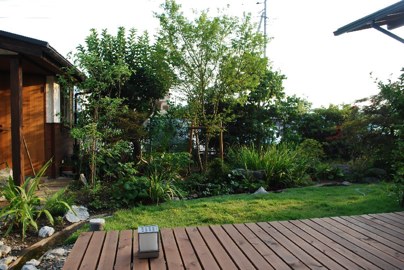 リビングのすぐ先に幅広のデッキを設けたことで、デッキに出て庭を愛でたいという