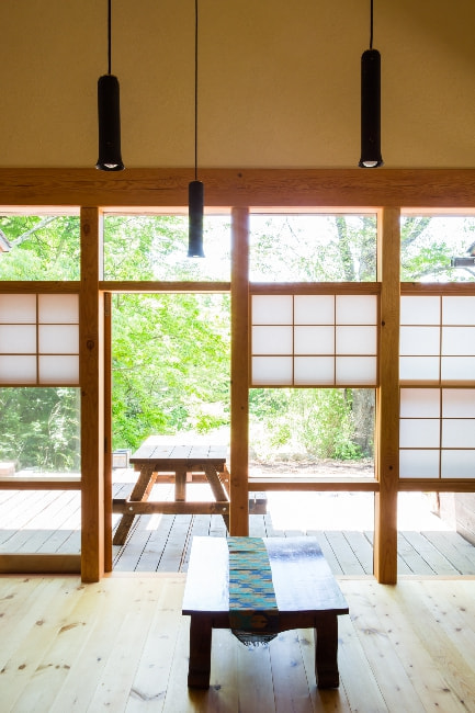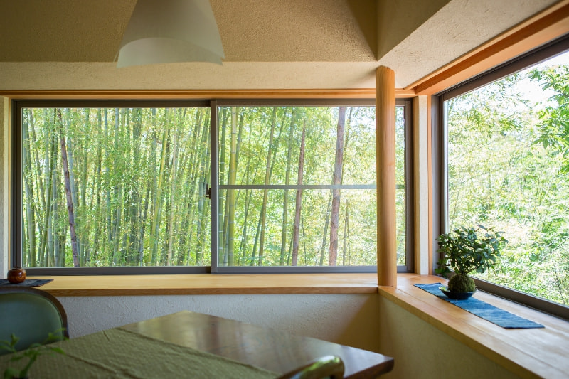 多彩な自然の中に馴染む、猫間障子のある家