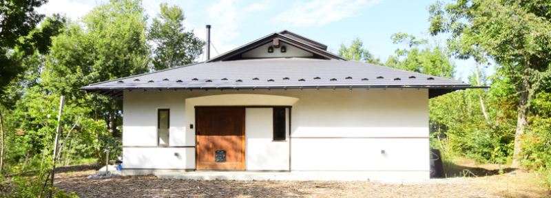 夫婦用のバストイレ付きの部屋とは別に、ロフト付きのゲストルームを造り、古材の引き戸や箱階段を入れ、ロフトに抜けられる穴を設けるなど、夫婦のこだわりと遊び心を反映させた。木部の塗装はご夫婦が担当。庭先の土の下からなんと5千年程前の縄文時代の囲炉裏が発掘されたので、広いデッキの先に当時のままの石組みを再現している。